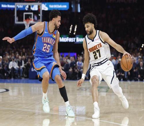 北京时间3月10日,NBA常规赛继续进行。雷霆坐镇主场与掘金展开激战,两大夺冠热门的巅峰对决,可谓是看点十足。OKC近日取得了5连胜,战绩领跑联盟。霍姆格伦、哈尔滕施泰因、杰伦威廉姆斯、卡鲁索、卡尔森伤停,戴格诺特的首发五虎是亚历山大、多尔特、华莱士、杰林威廉姆斯与以赛亚乔。沃特森伤停,丹佛的首发五人是约基奇、阿隆戈登、布劳恩、卡梅隆约翰逊与贾马尔穆雷。排名跌至西部第6的丹佛,渴望强势反弹。该场比赛是双方本赛季的第三次交手,前两战都取得了胜利的雷霆更有心理优势。此外,该场比赛还是两大MVP热门人员约基奇、亚历山大的直接交锋。