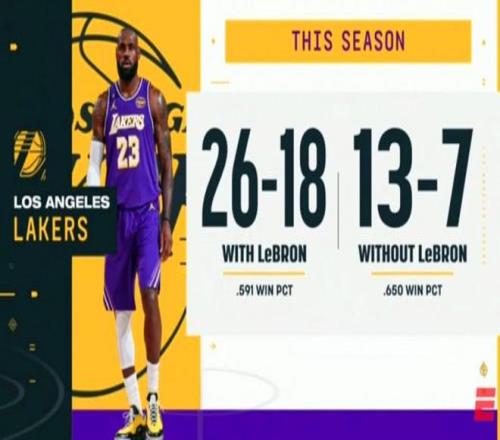 只不过,这两场胜利也放大了詹姆斯与东里之间球权分配和能力上的重叠问题,本赛季在其出战时湖人胜率为59.1%,缺席后提升至65%,如果是东里同时出战,而詹姆斯缺席时,胜率更是飙升至81.8%。