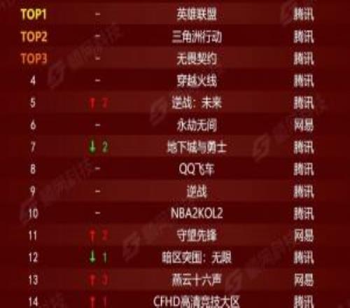 电竞体育3月10报道 2月网吧游戏热力榜更新,英雄联盟仍旧位列第一,三角洲行动第二,无畏契约第三,腾讯系游戏包揽前五,第六为网易永劫无间。